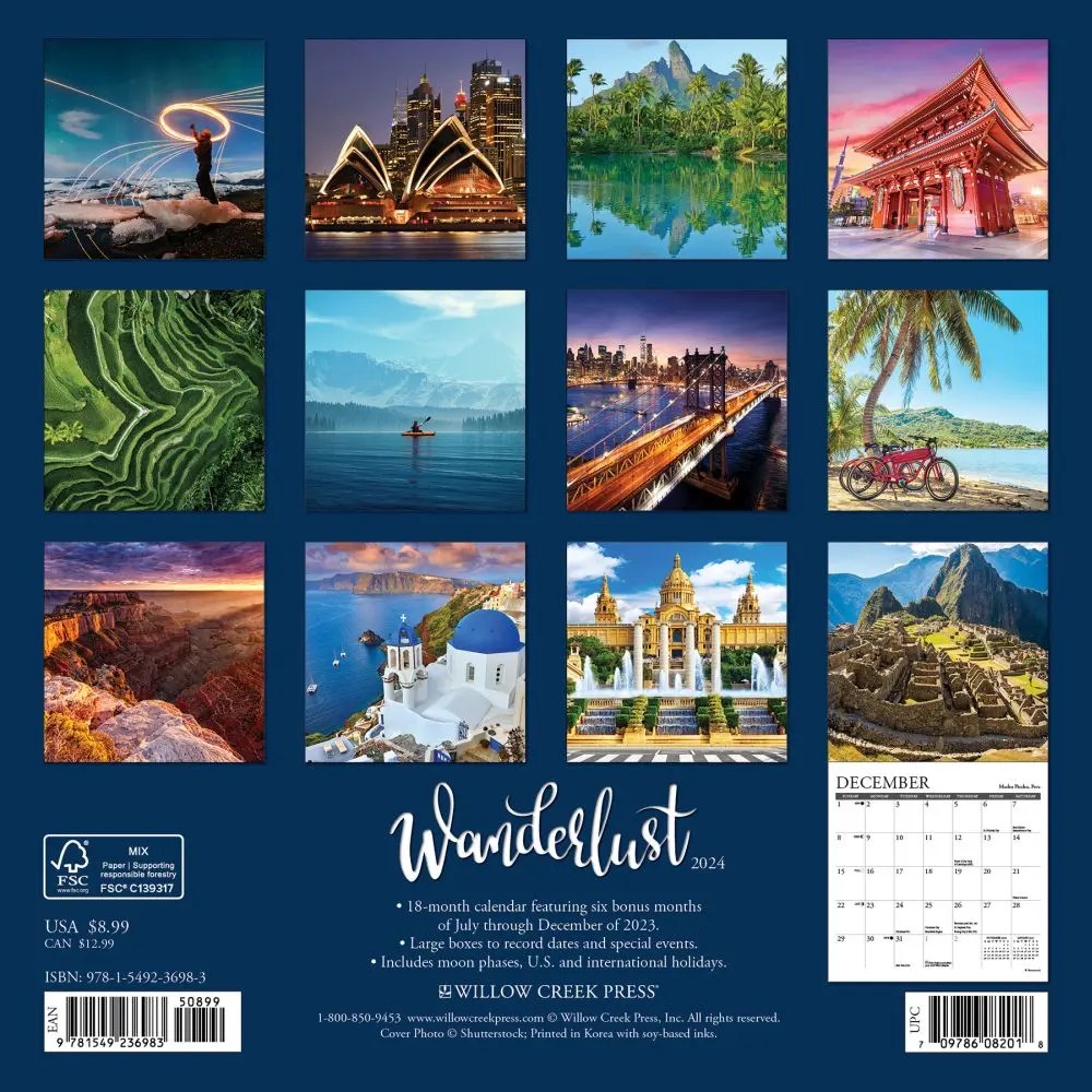 2024 Wanderlust 12X12 Wall Calendar.